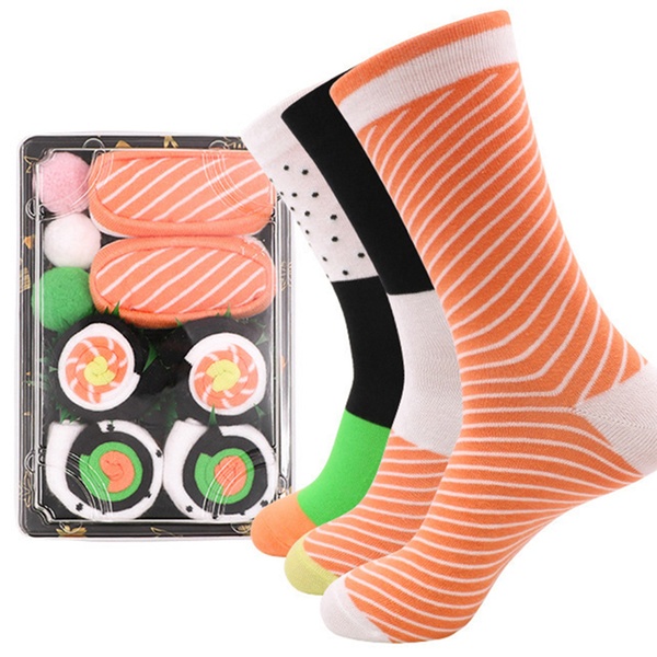 Today's Groupon offers 3, 4 or 5 Pairs of Salmon Sushi Funny Socks, distributed by Sensual Sale Co.