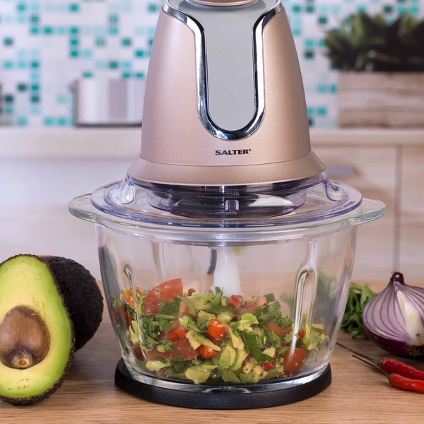 The Salter Food Chopper is a stylish, multifunctional appliance perfect for creating healthy homemade dressings, dips and sauces