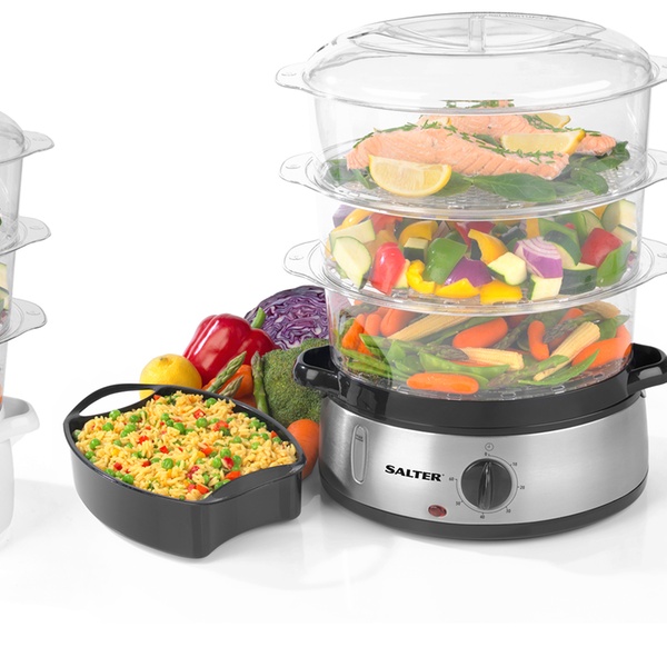 Featuring three tiered bowls and a rice container, these steamers allow for a more healthy and effortless cooking