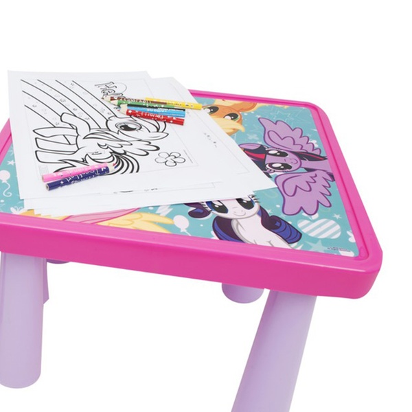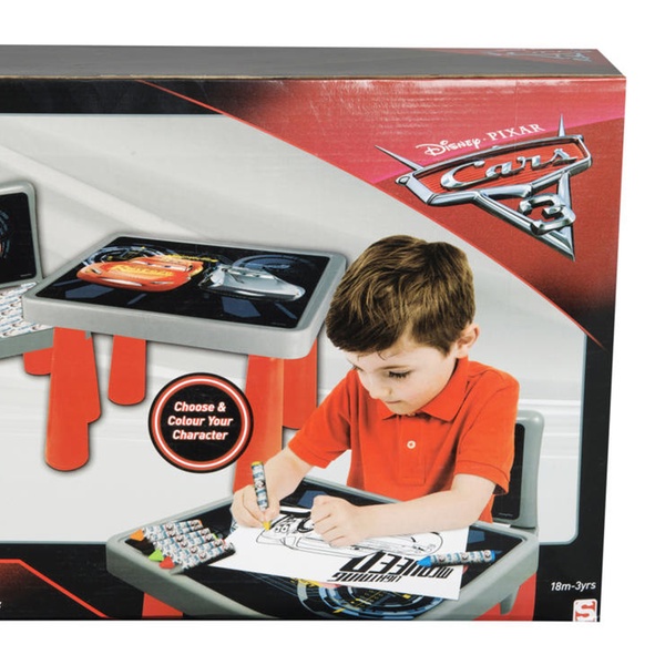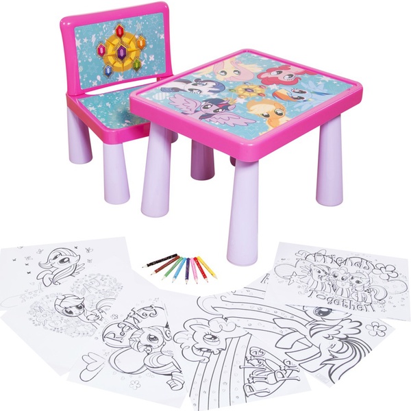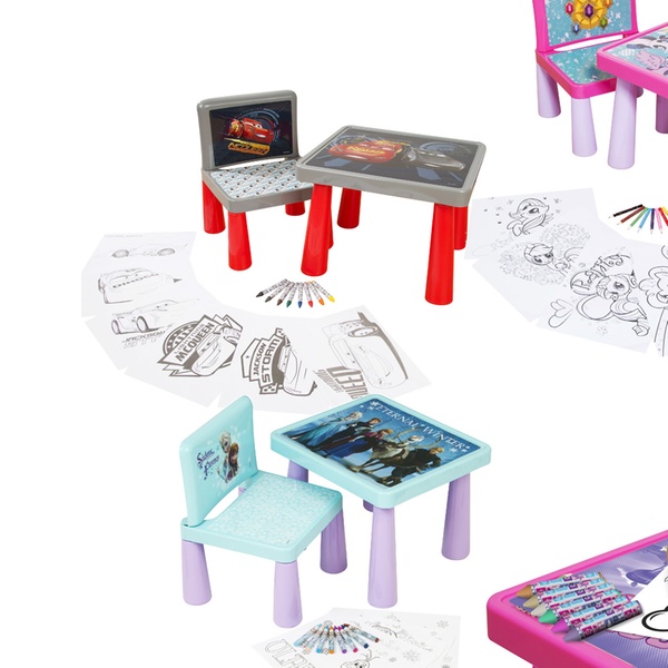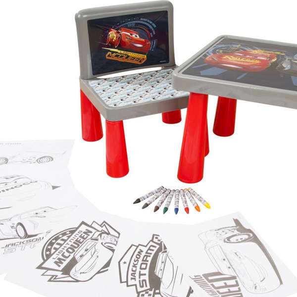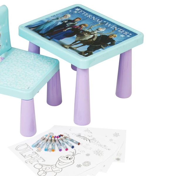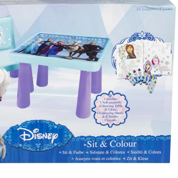 - Includes: colouring table, chair, six colouring sheets and eight jumbo crayons