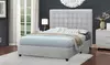 - Soft grey fabric upholstery suits modern and transitional bedrooms