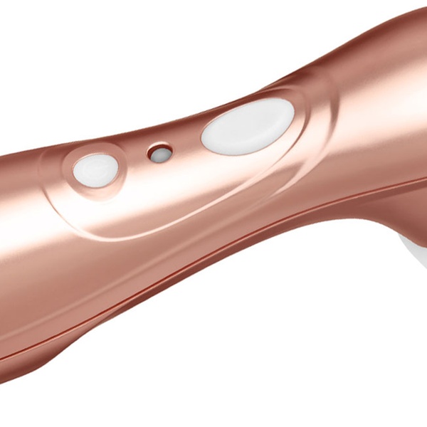 This stimulator for women is ergonomically designed with a slim handle and two-button controls; features a hollow silicone tip