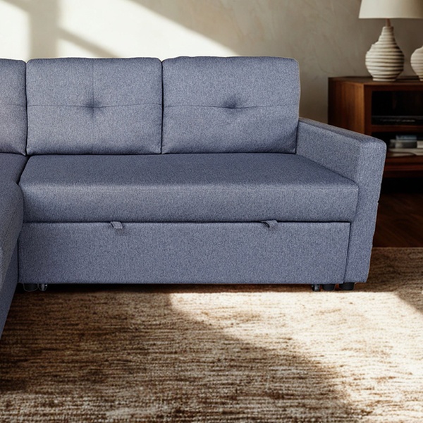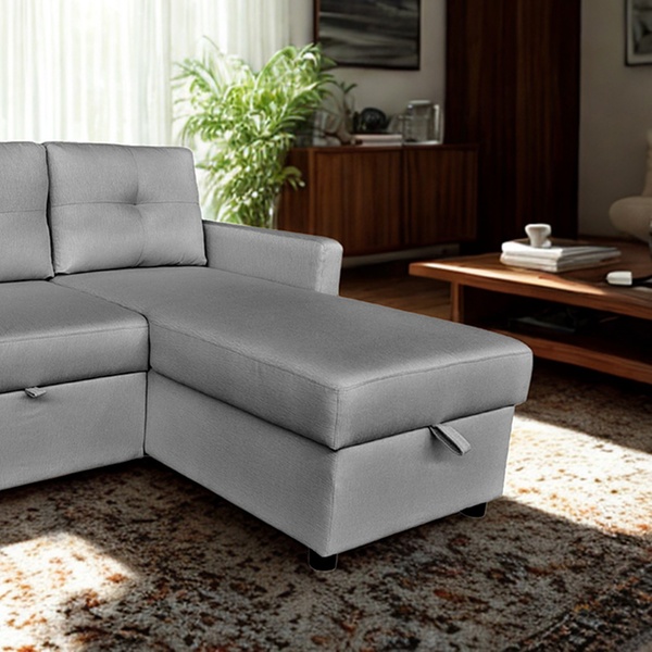 Transform any small space into a cozy retreat with a sleek L-shape design and built-in storage, perfect for unexpected guests
