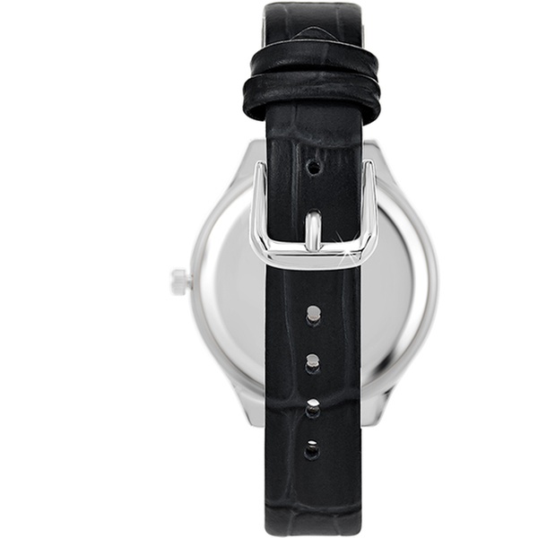 • Black leather strap - Length: from 17 to 21cm - Width: 18mm - Clasp: Buckle