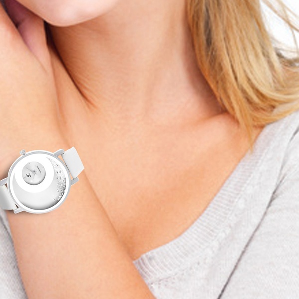 • White leather strap - Length: from 17 to 21cm - Width: 18mm - Clasp: Buckle