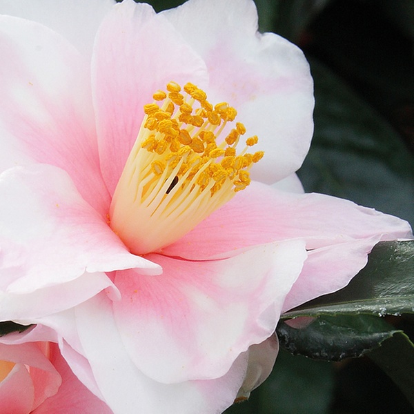 - Camellia Sasanqua Rainbow: fragrant, elegant white flowers with pretty rose-pink edging and bright yellow centres