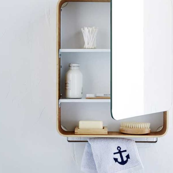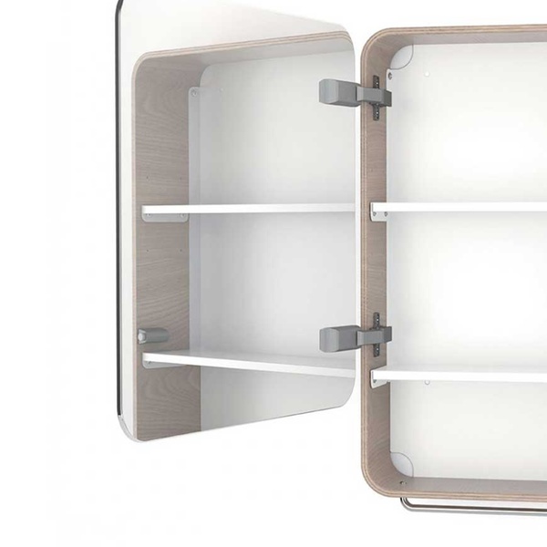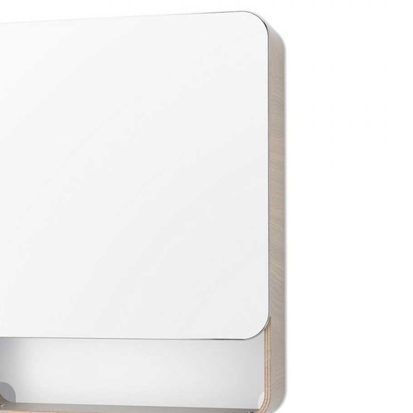 This compact but usefully sized stylish mirrored cabinet features a handy lower shelf for storing toiletries in the bathroom