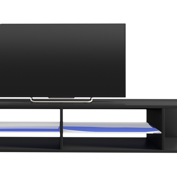 Designed to conveniently accommodate a TV, this practical stand features two handy compartments for storage and LED lighting