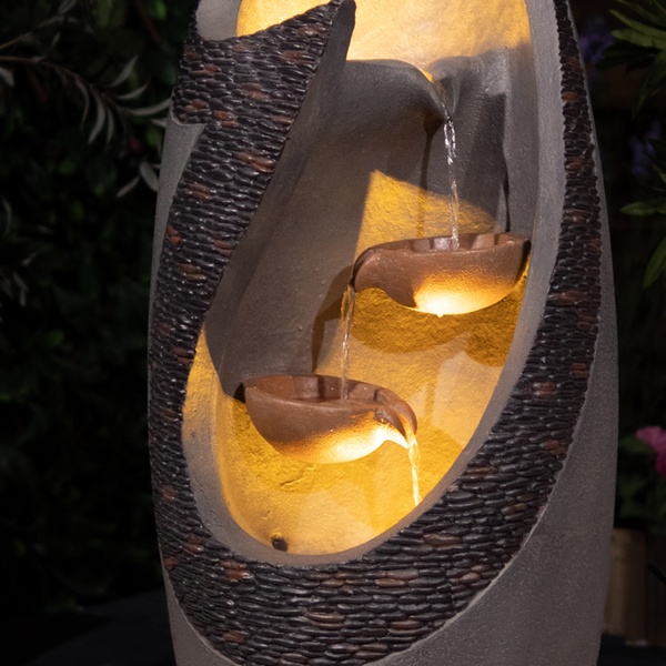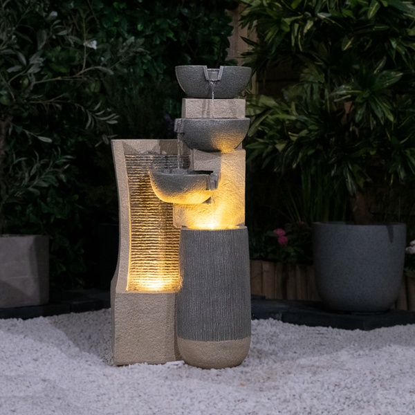 Create a stylish and relaxing space in the garden or courtyard with these eye-catching water features which feature LED lights