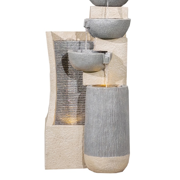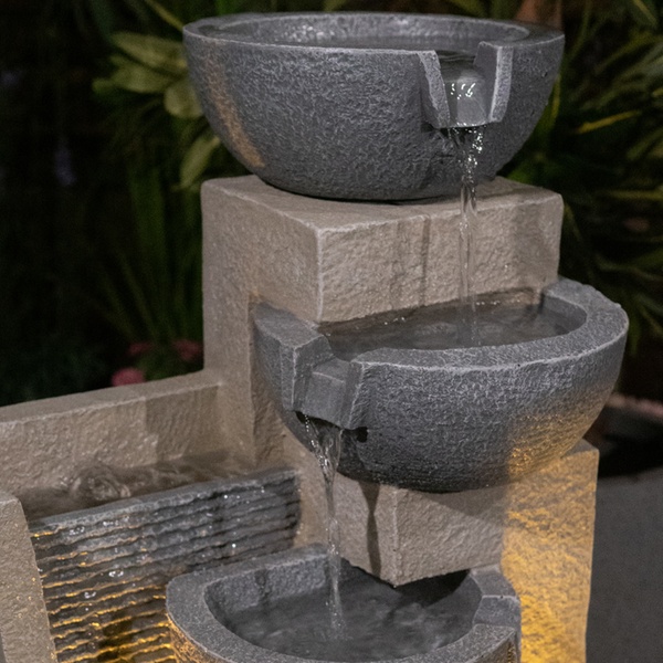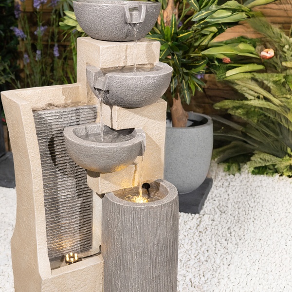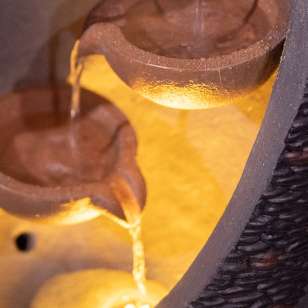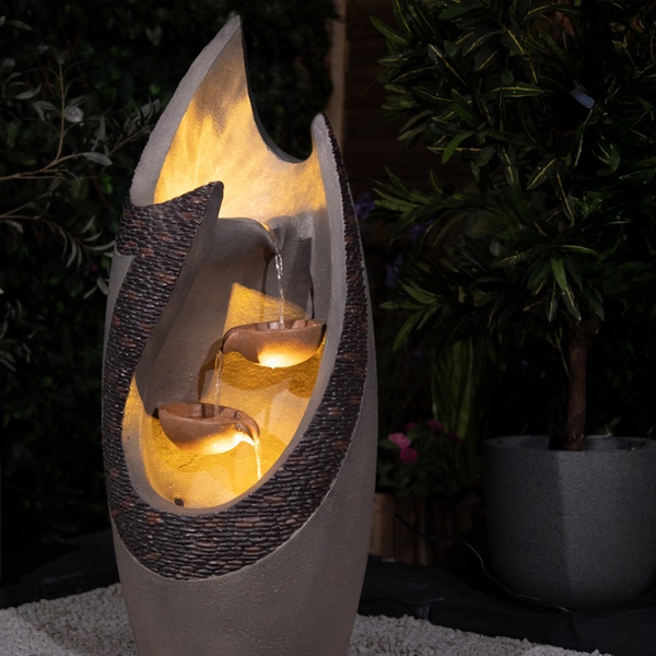 Create a stylish and relaxing space in the garden or courtyard with these eye-catching water features which feature LED lights