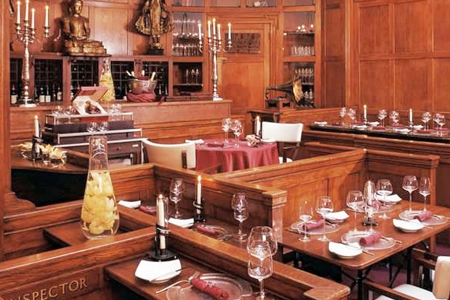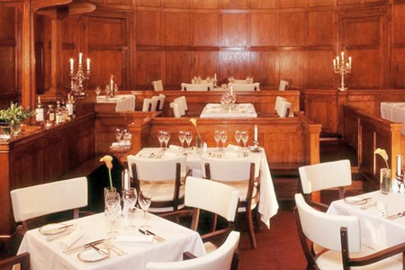 Combining a courtroom setting and Asian-fusion cuisine, Silk Restaurant is lit by a vaulted glass ceiling and framed in English oak panelling. Starting life as Great Marlborough Street Magistrates Court, the building still features the original judge’s bench, dock and witness stand where Napoleon, Oscar Wilde and Sir Mick Jagger once stood trial. Customers can take a culinary journey through the historical silk route in Asia, dining on a taste fusion of once-rare spices and traditional English fare.