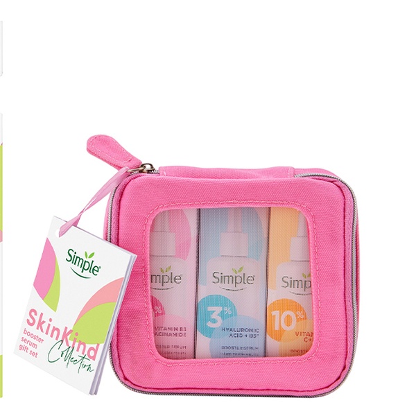Features three skin-friendly gifts from the Skin Kind range, presented in a small travel beauty bag