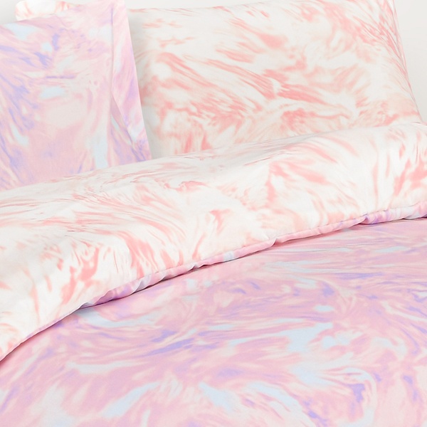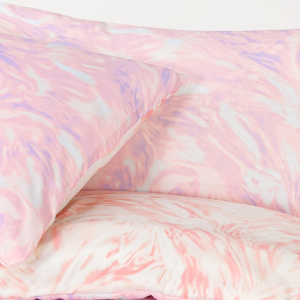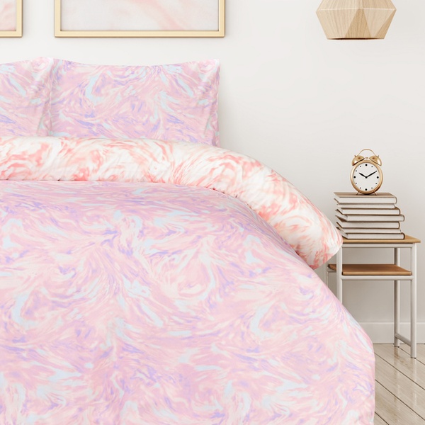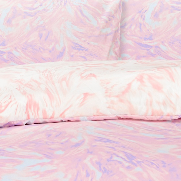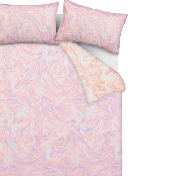 • Features a dreamy lilac and peachy swirl design