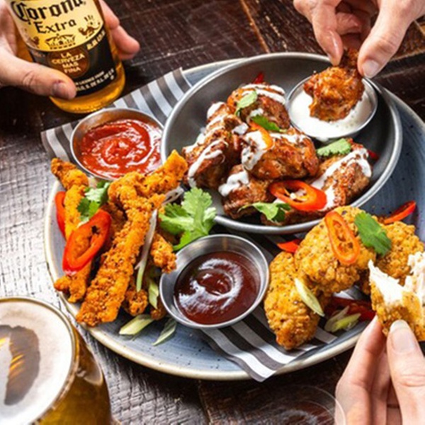 Spicy Chicken Nachos for One | Nachos for One (V) | Cheese Donuts (V) | Salt and Pepper Mushrooms* (V) | Panko Prawns | Citrus Pea Bites (VE)