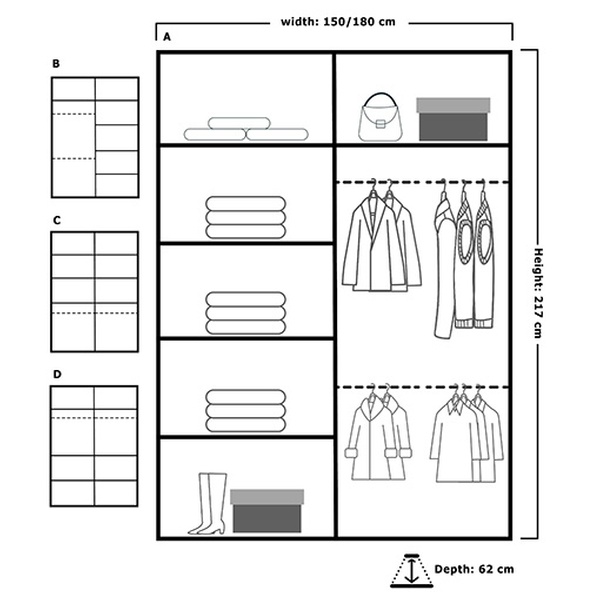 - Dimensions: (W) 150cm x (H) 217cm x (D)62 cm