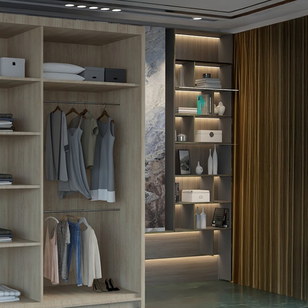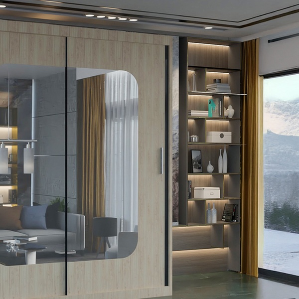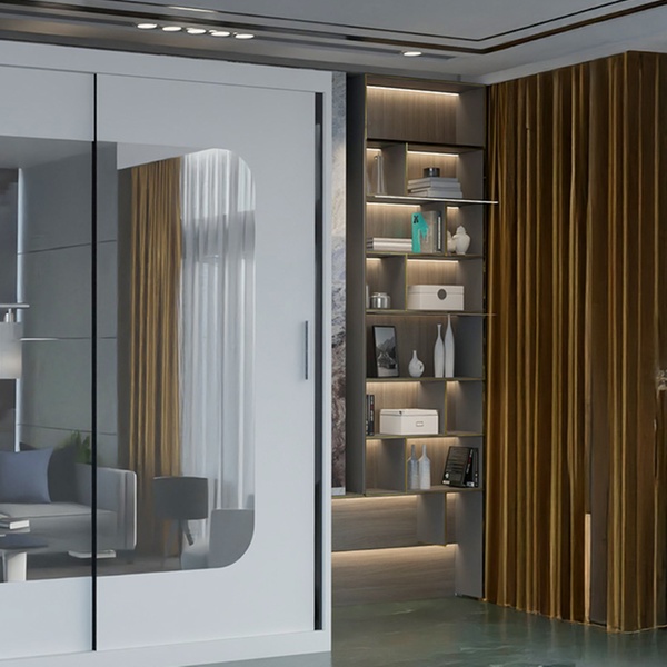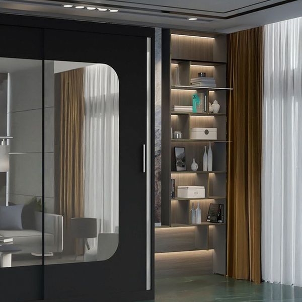 Sleek sliding doors and a full-length mirror redefine style while keeping everything organized and accessible in one chic wardrobe.
