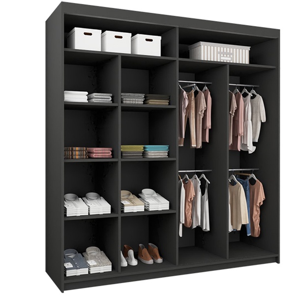 With spacious dimensions and a sleek sliding mirror design, this wardrobe redefines stylish storage for any room