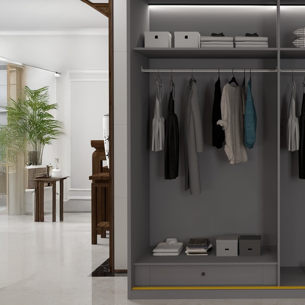 - The smooth sliding doors maximise floor space and ease of access, making them ideal for compact or modern bedrooms