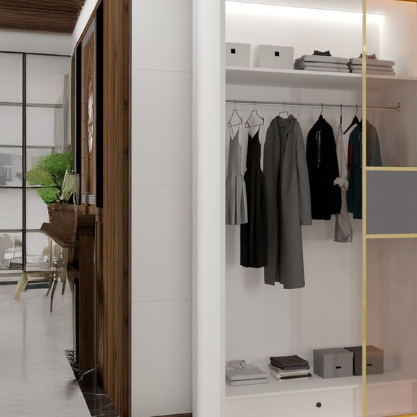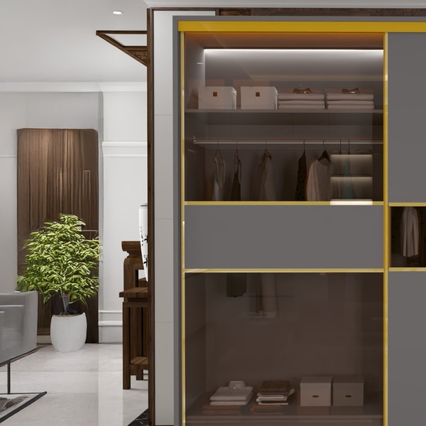 Experience seamless organisation with a stunning sliding glass door that enhances space while keeping belongings neatly tucked away