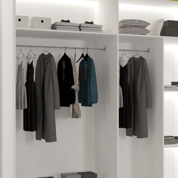 - Two hanging rails for neatly arranged outfits