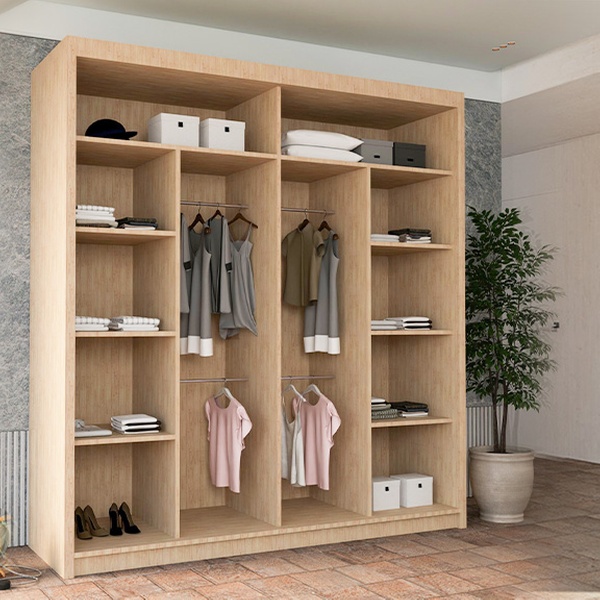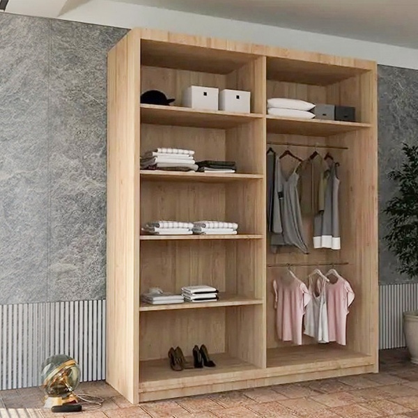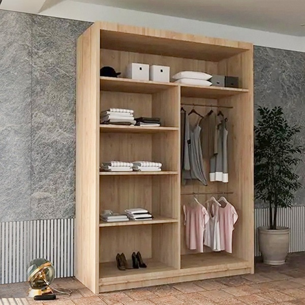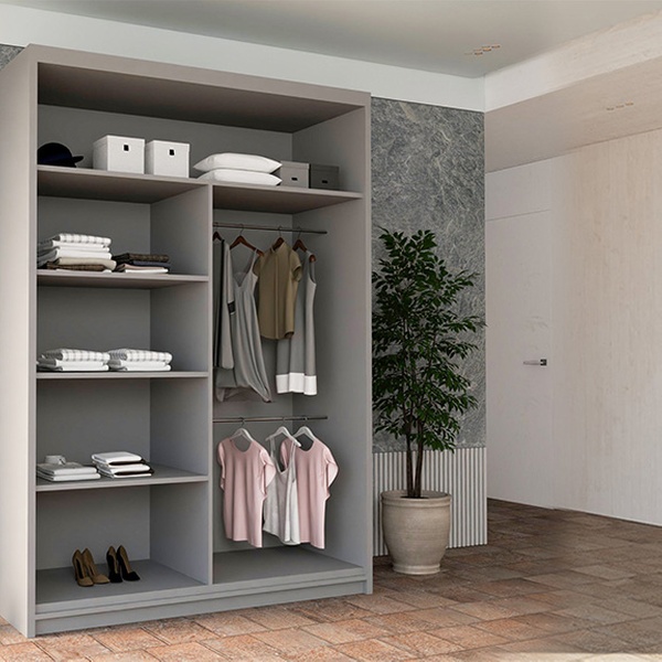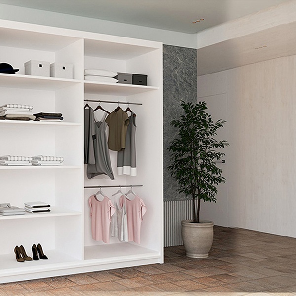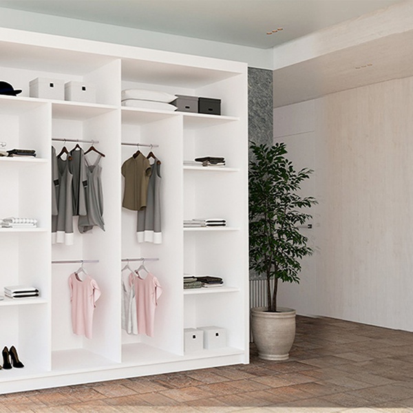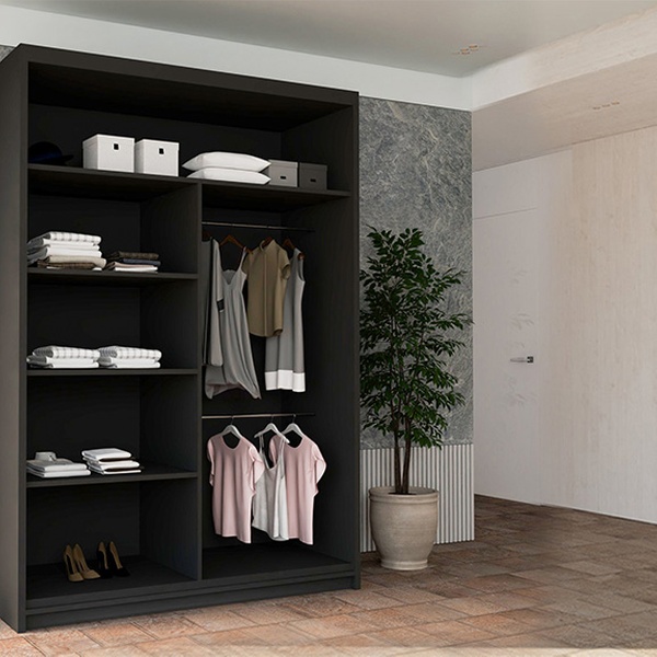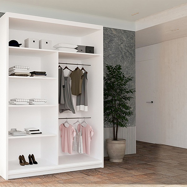 - 120cm model includes 4 shelves and 2 hanging rails
