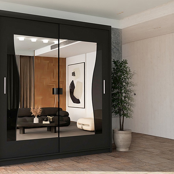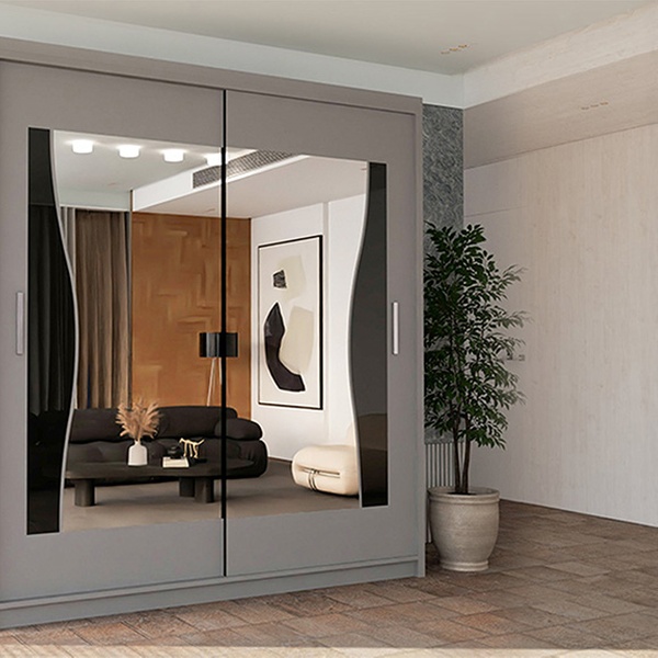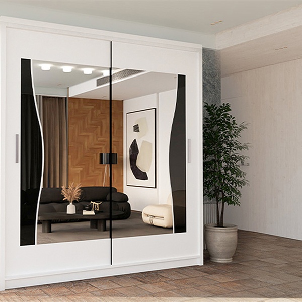- Elegant wardrobe with a unique curved mirror design