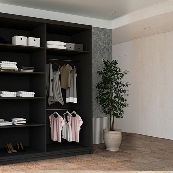 - 180cm and 150cm models include 5 shelves and 2 hanging rails