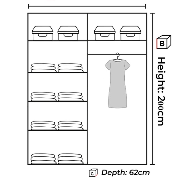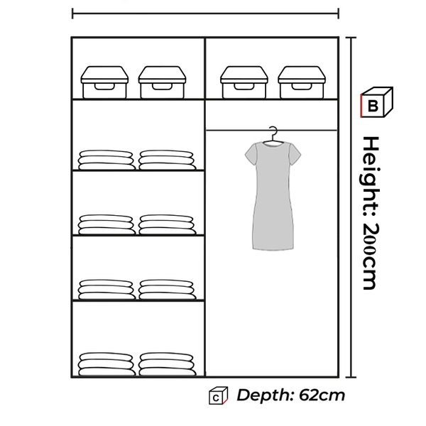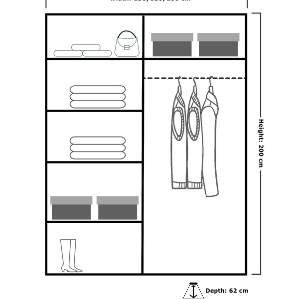 • Dimensions: 150/180/200cm (L) x 62cm (D) x 200cm (H)