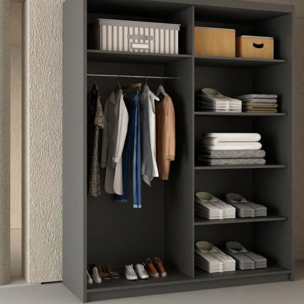 Crafted for modern living, this wardrobe features a sliding mirrored door for a sleek look while maximizing storage efficiency