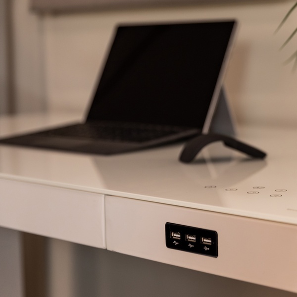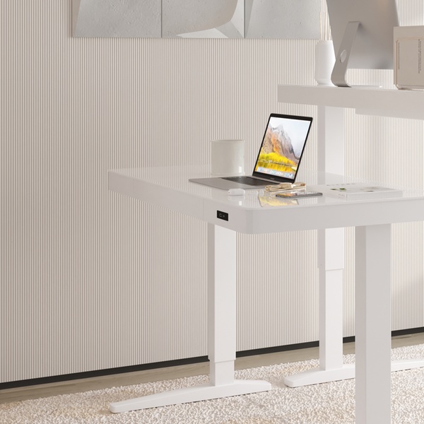 This stylish smart desk with its glass top can be the ideal solution for working from home whilst staying focused