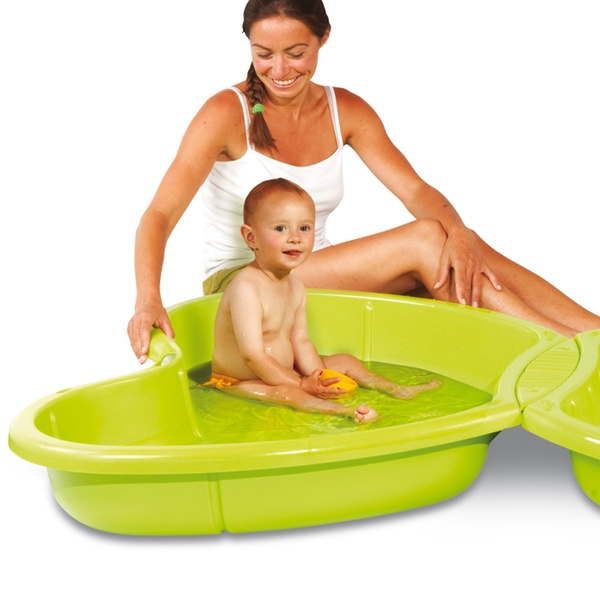 Featuring two capacious lids that can be filled with either water or sand, this sand pit can be easily connected to a garden hose