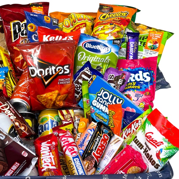 - The snacks box can include more than 30 hand-picked sweets, chocolates, biscuits, crisps