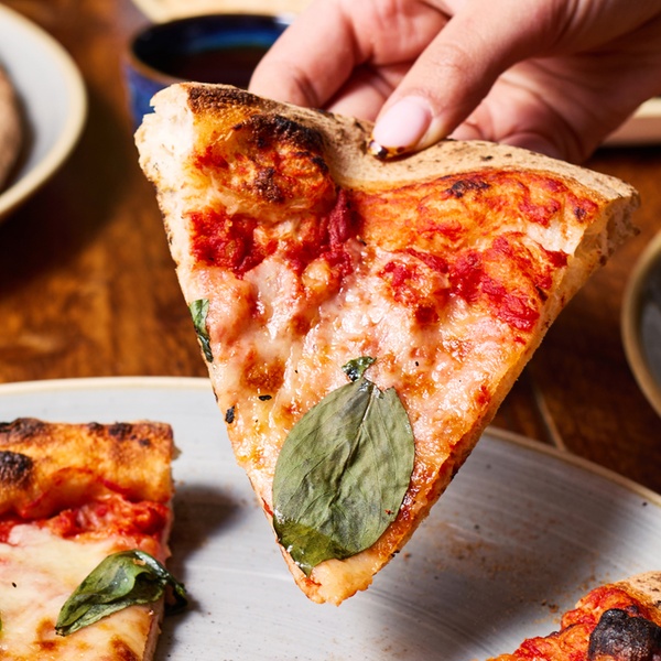 Pizza options: Easy Cheezy (VG-M) | Easy Cheesy (V-M) | A Load of Pepperoni | Barbie Chick | The Mighty Meat | Swicy Plant-Based (V-M) | Swicy Plant-Based (VG-M) | Detroit-Style Pepperoni | Detroit-Style Margherita (V) | Doner Kebab | Sweetcorn riblets (VG)