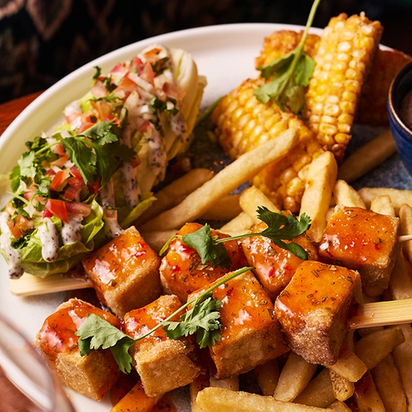 • Sticky Crispy Coated Sweet Chilli Smoked Tofu Skewers (VG)