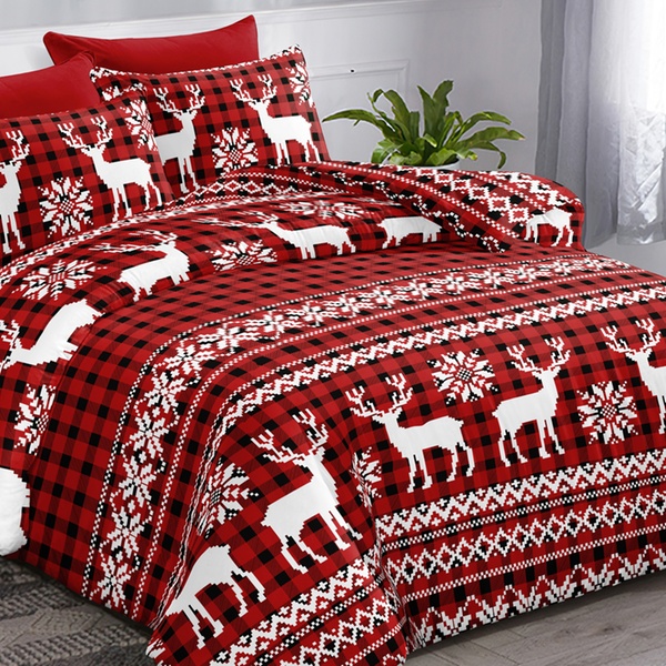 Choose from a variety of festive printed designs! This easy-care, durable bedding is reactive dyed for lasting colour and is completely machine washable. It's the perfect way to add holiday cheer and comfortable sleeping to bedroom.