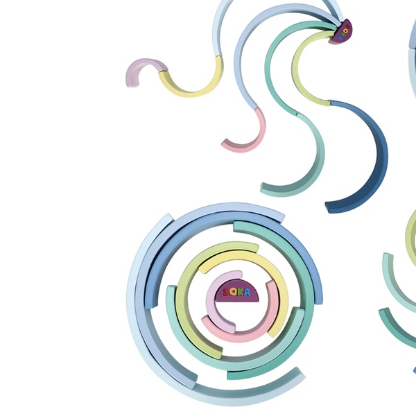 - Colourful rainbow blocks come in 10 different sizes and can be stacked into various shapes to stimulate children's imagination