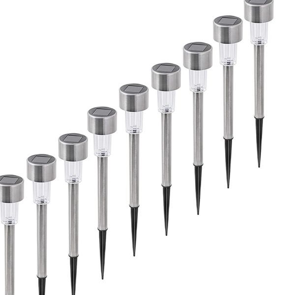 - Ideal for highlighting the edge of a garden path* Easy to install * Remove the insulator tab under the cap and slide the pole into the ground* The solar path lighting switches on automatically at night and off at dawn* The lights charge during the day in direct sunlight* Solar battery: 2V, 40mA* Dimensions: 21cm x 4.5cm x 4.5cm