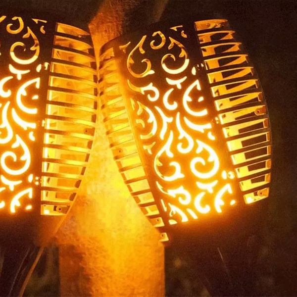 - Flickering lights mimic a tropical tiki feel without the danger of actual fire