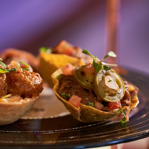 Sound BBQ pulled pork Taco Crispy taco cups topped with our pulled BBQ pork.