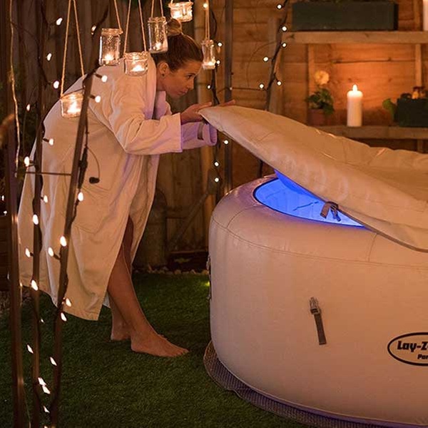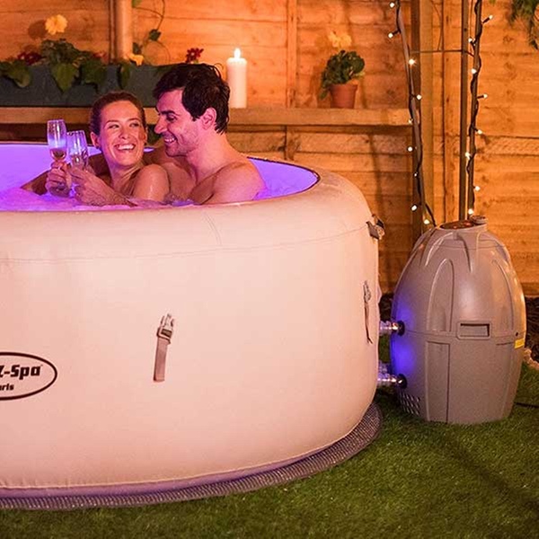 Enjoy leisure time alone or with friends, using this hot tub with LED lights, designed to bring water massages to a new level