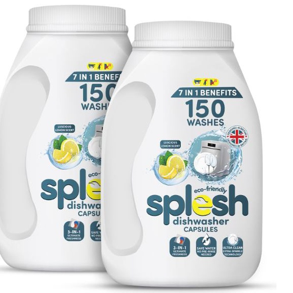 Today's Groupon offers Splesh 3-in-1 Dishwasher Tablets, Lemon: 150 or 300 Capsules, distributed by Rex Brown Ltd.