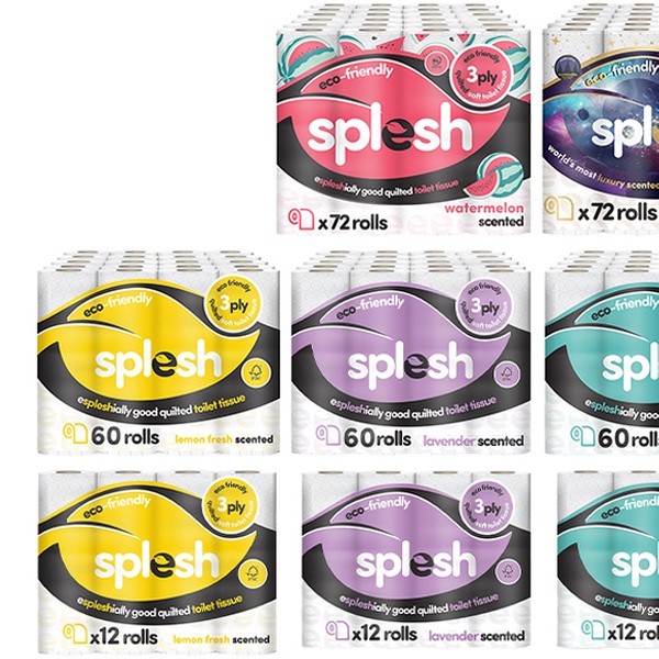 Up to 72 Rolls of Splesh Toilet Roll Mega Bundle, Soft and Quilted Eco-Friendly Scents