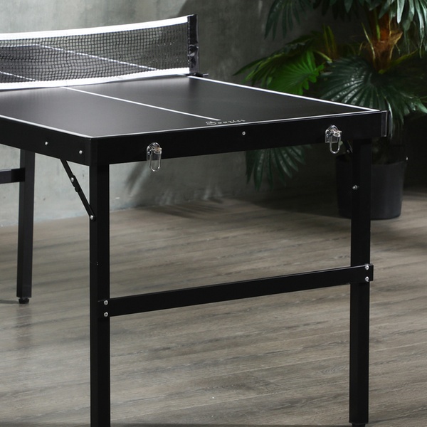 Supported by a rustproof and lightweight aluminium structure, a practical item to entertain friends and family for hours and increase one's table tennis skills.