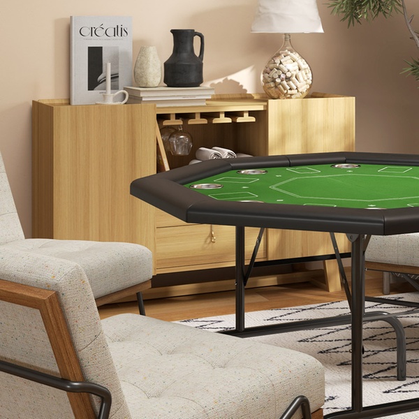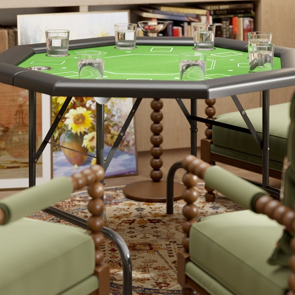 - Extra-large 120cm × 120cm octagon table comfortably seats up to eight players.