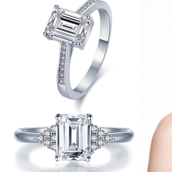 Featuring AAAAA-grade cubic zirconia stones, these emerald-cut rings are made from 925 sterling silver and are delivered with a gift box