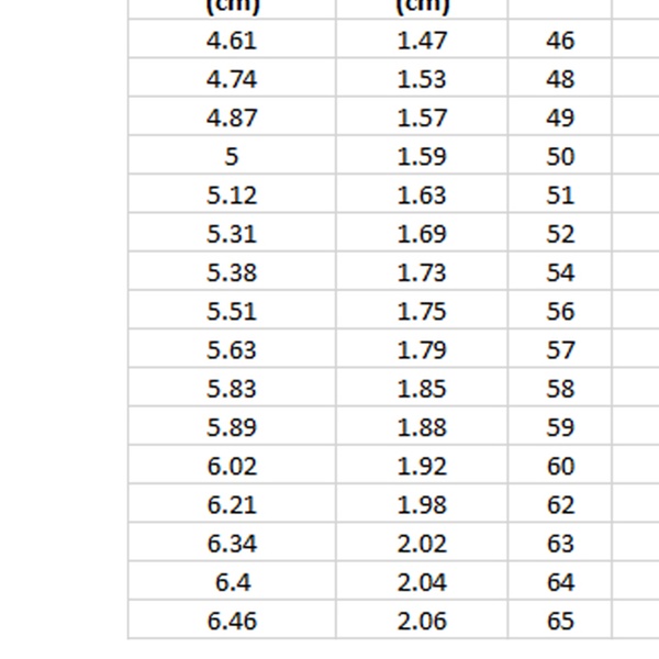 | UK Size | Diameter |