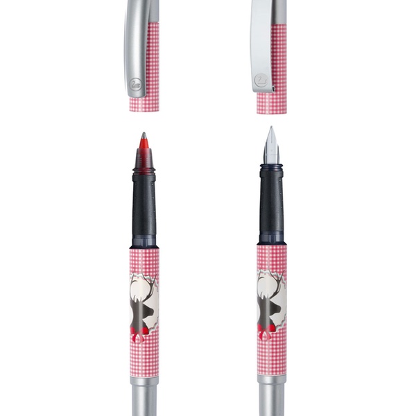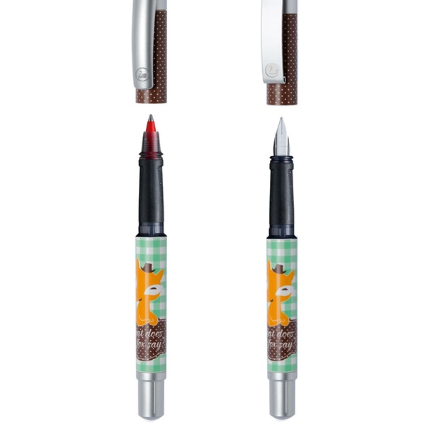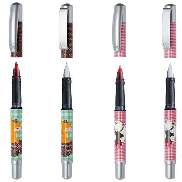 - Each set includes a rollerball pen and a fountain pen