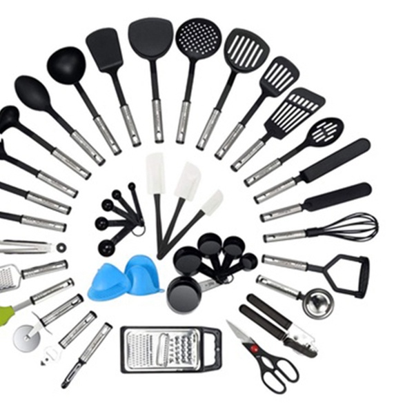 Featuring a durable design, these practical kitchen utensils are equipped with hanging loops for convenient and compact storage