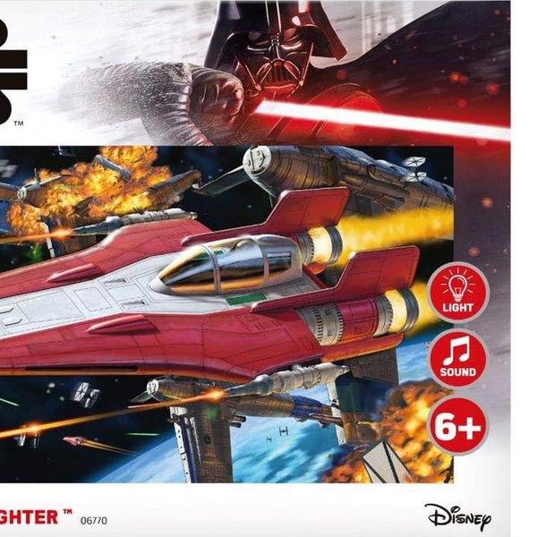 - Features the iconic wedge-shaped A-Wing starfighter from Star Wars: The Last Jedi.