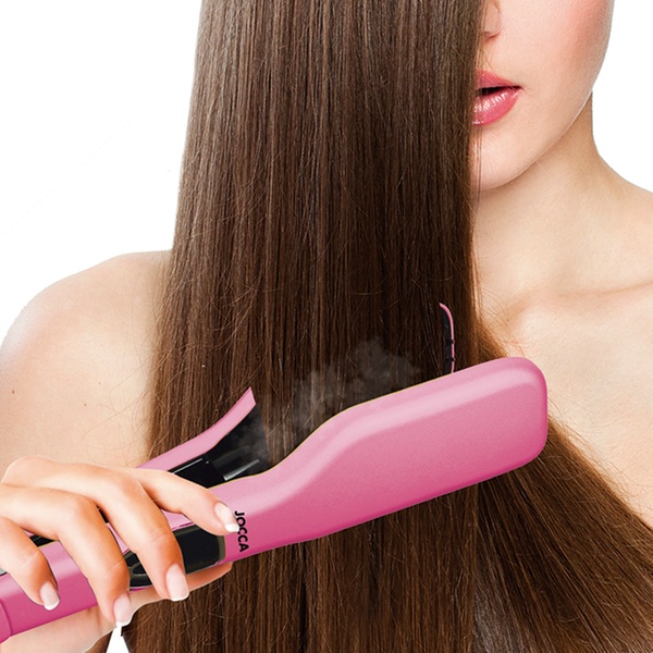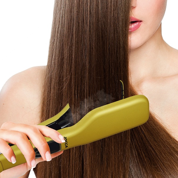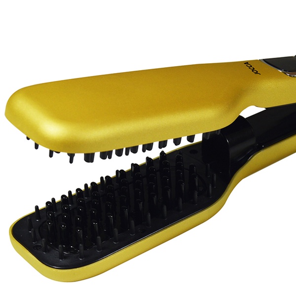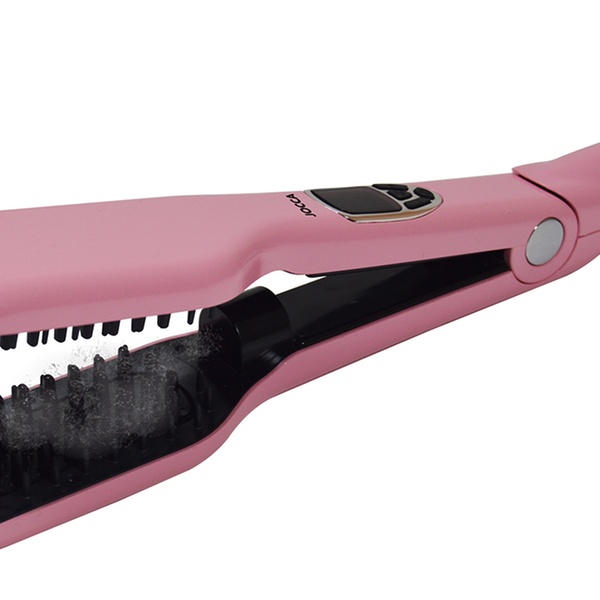 Style hair with this double-plate brush which uses steam and can adjust desired temperature, designed to help get hair straight and smooth